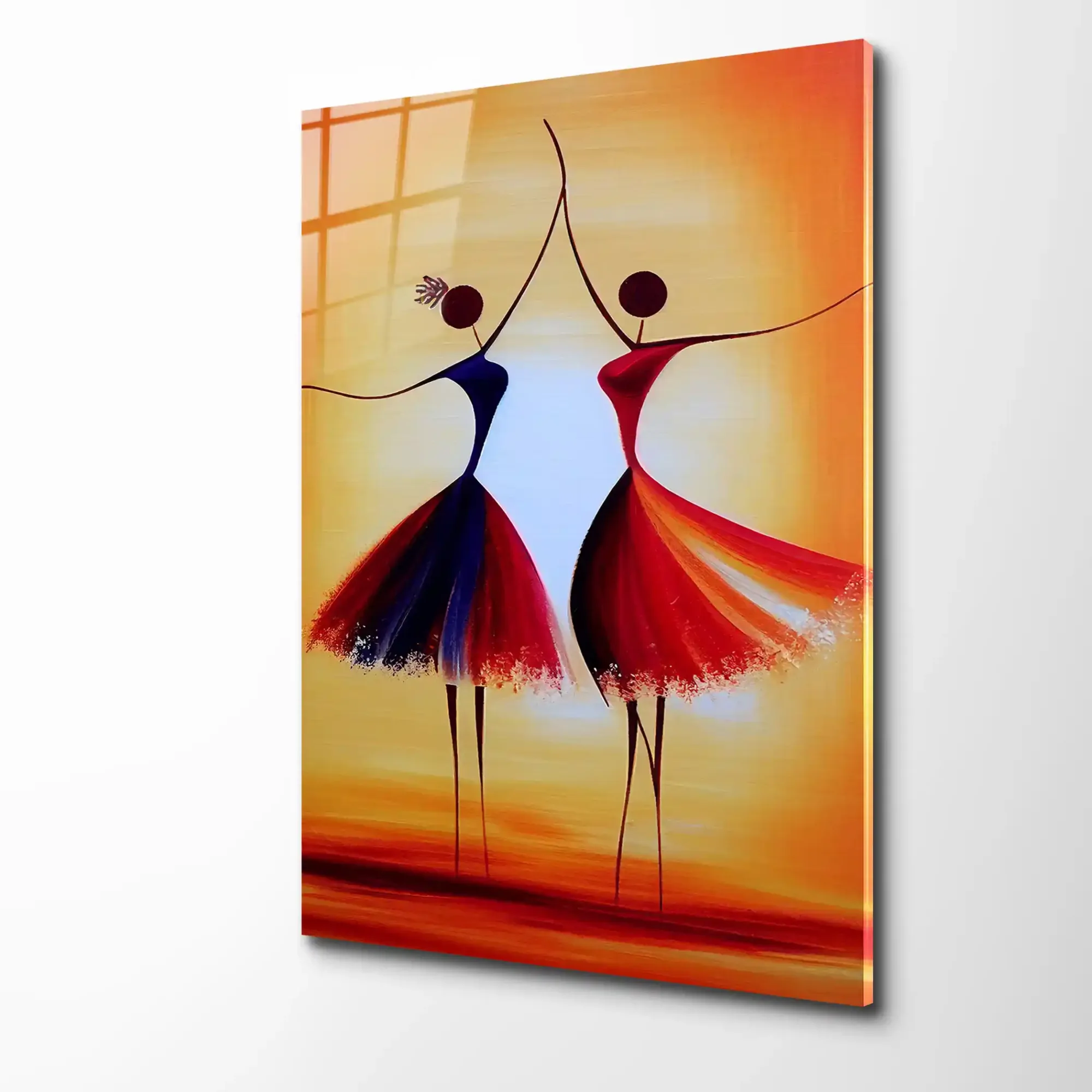Ruhun Dansı: Mavi ve Kırmızı Elbiseli Soyut Cam Tablo