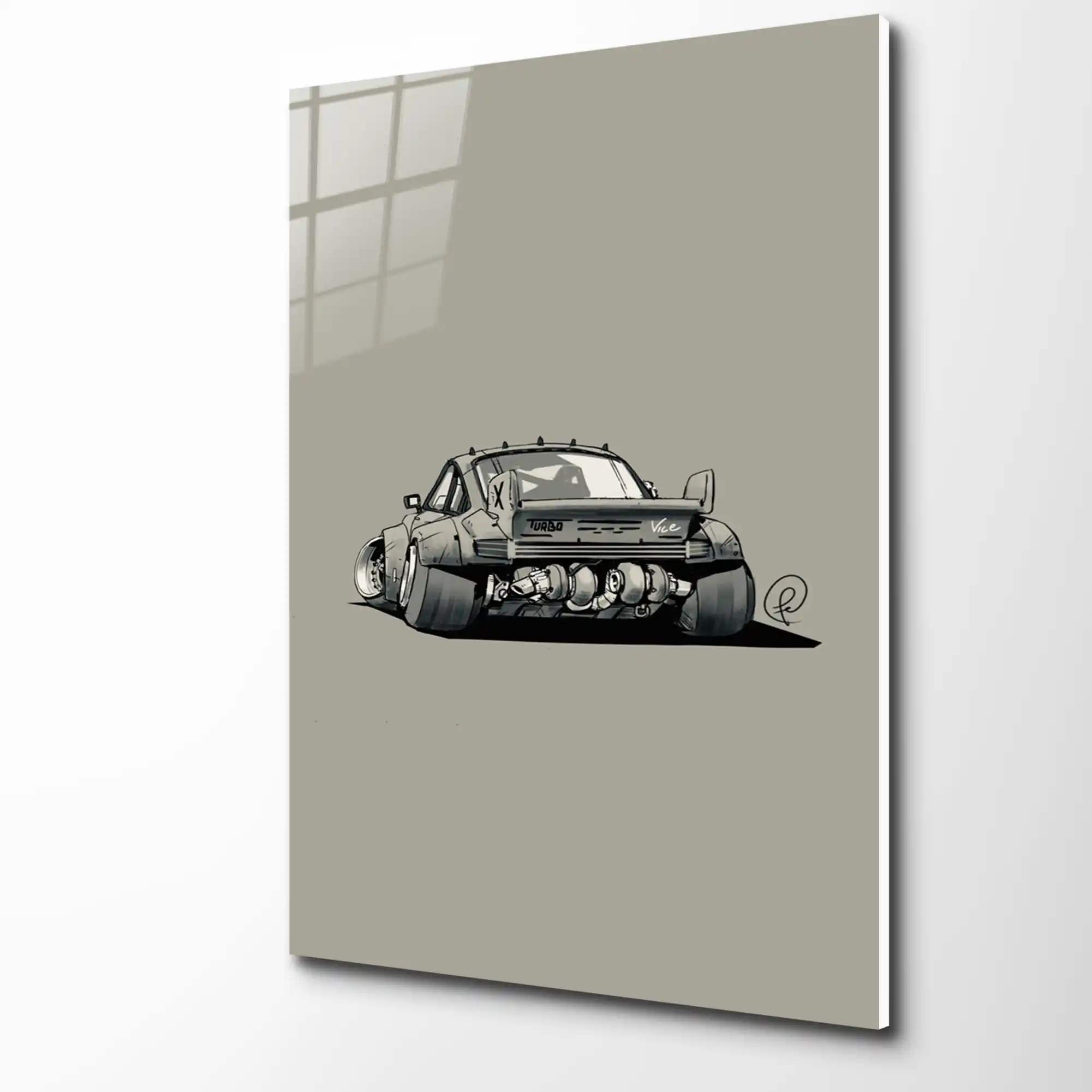 Özel Çizim Porsche 911 Dekoratif Cam Tablo