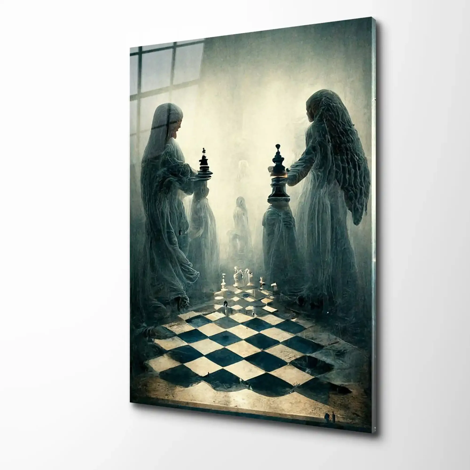 Ruhların Satrancı: Mistik Figürlü Modern Cam Tablo