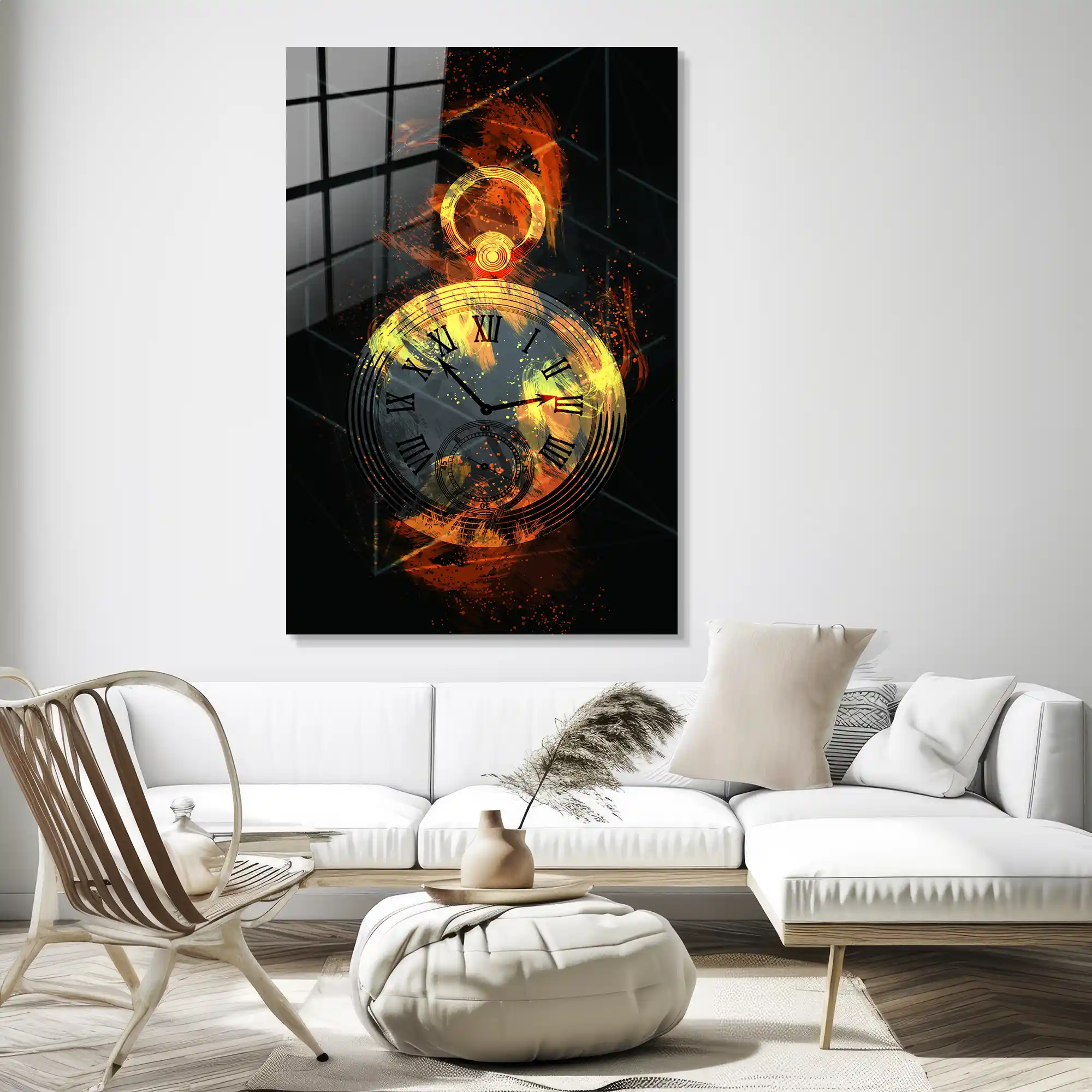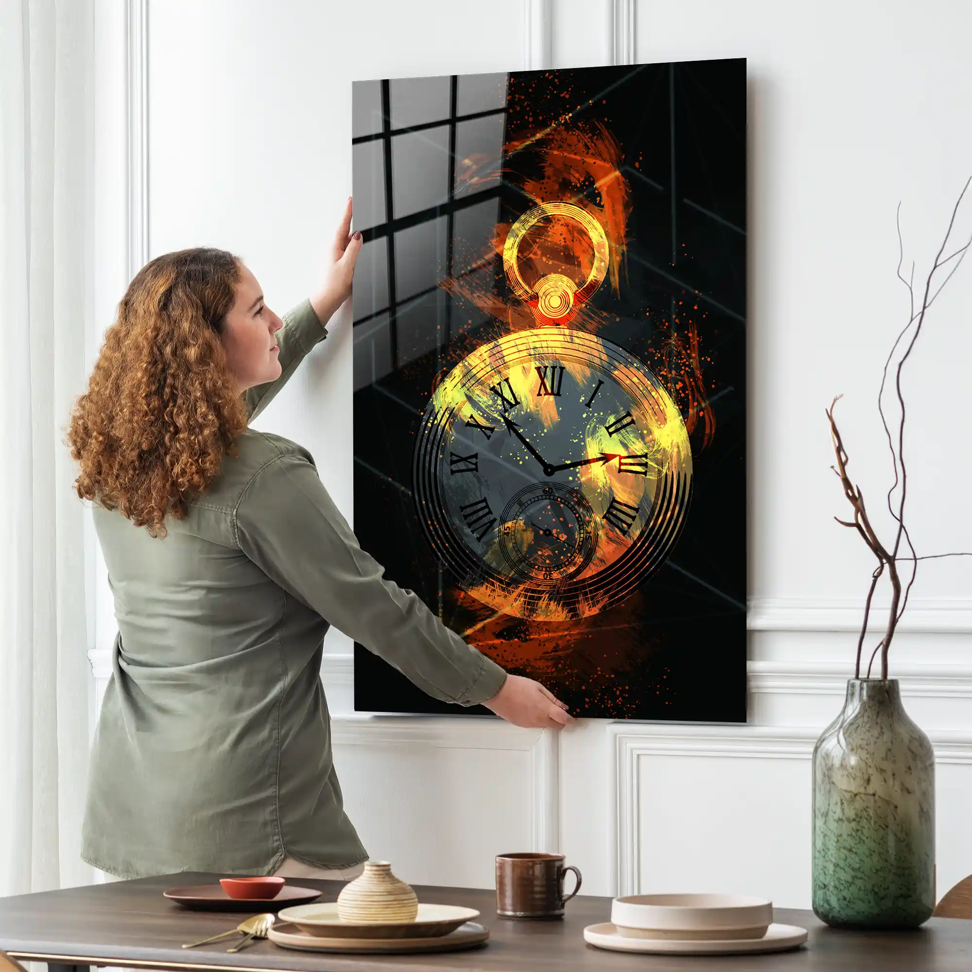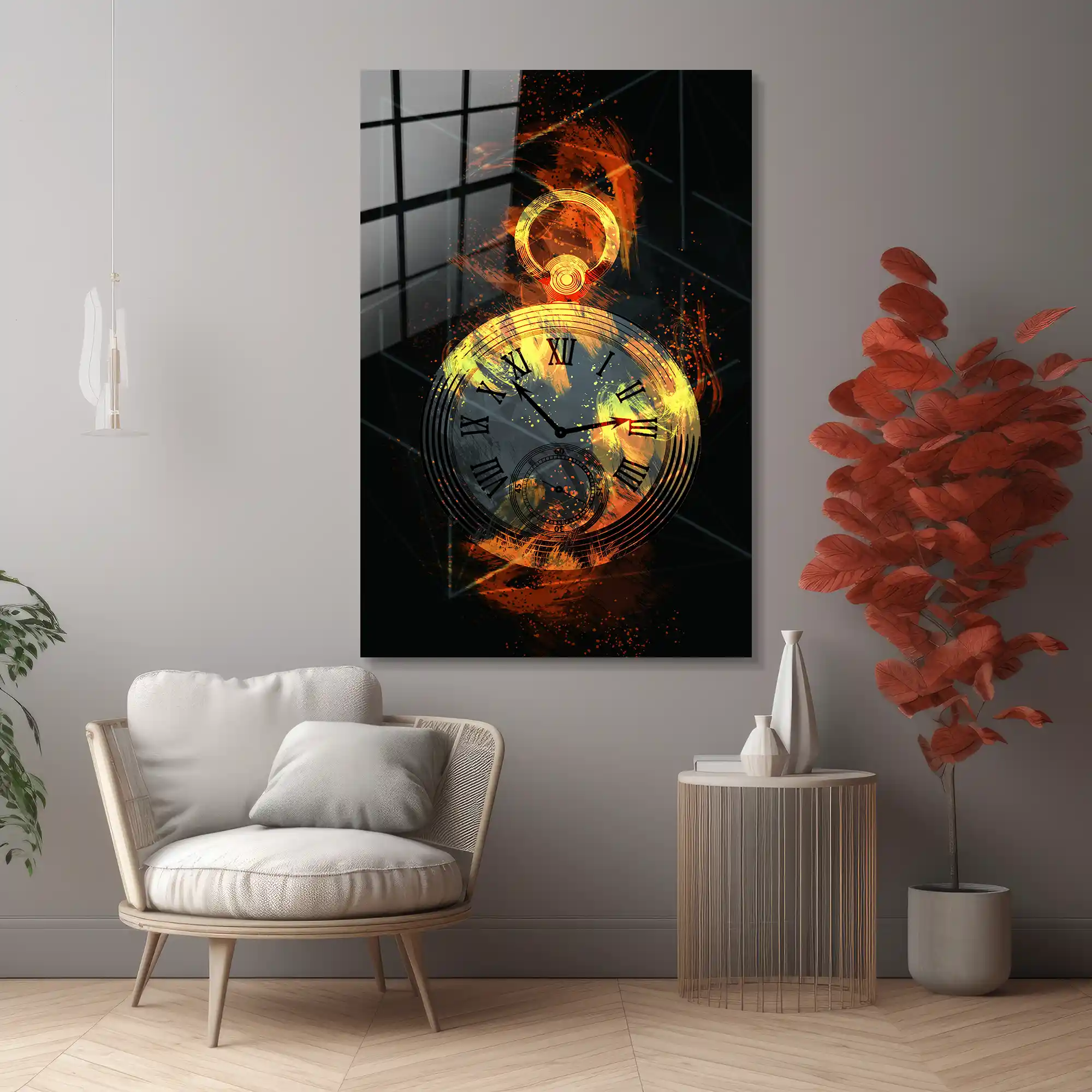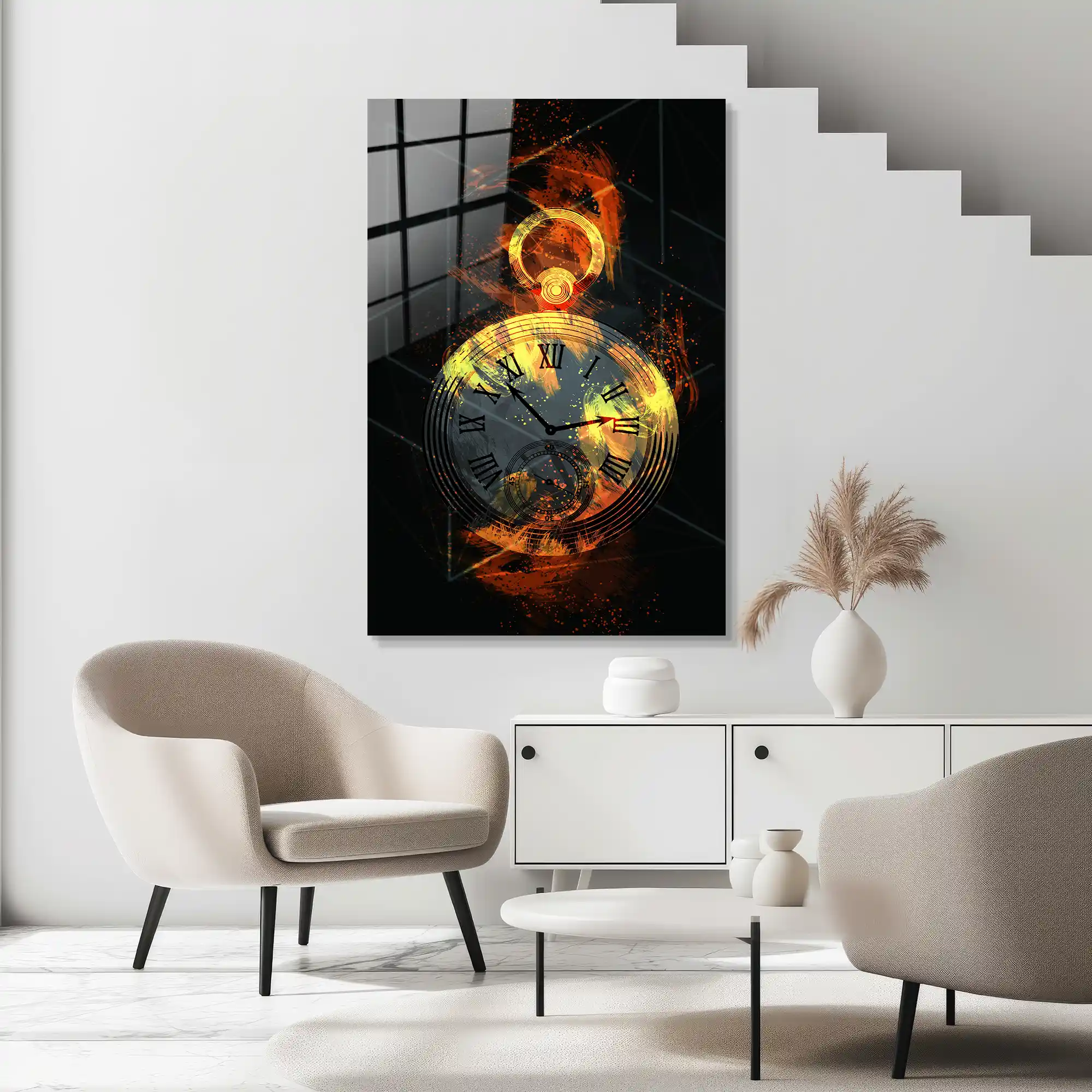 Alevlerin Ritmi: Soyut Köstekli Saat Tasarım Cam Tablo