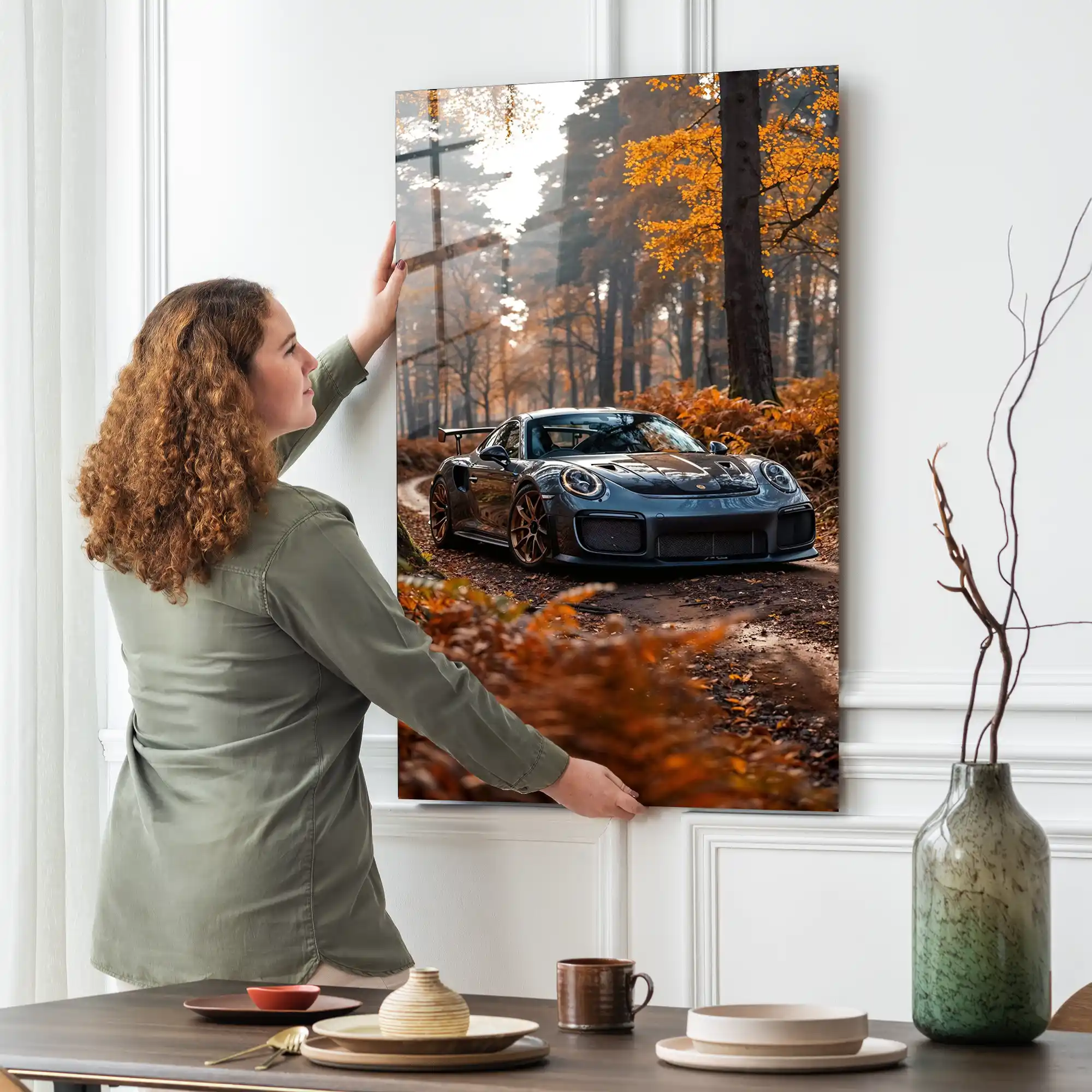 Asfaltın ötesinde, geçmişin taşlarında modern gücün yankılandığı o dinamik an… Bu özel cam tablo, gri Porsche GT3 RS’in yarış pistlerinden fırlamış agresif gövdesi ile Akdeniz mimarisinin ve tarihi sokakların sıcak atmosferini birleştiriyor.