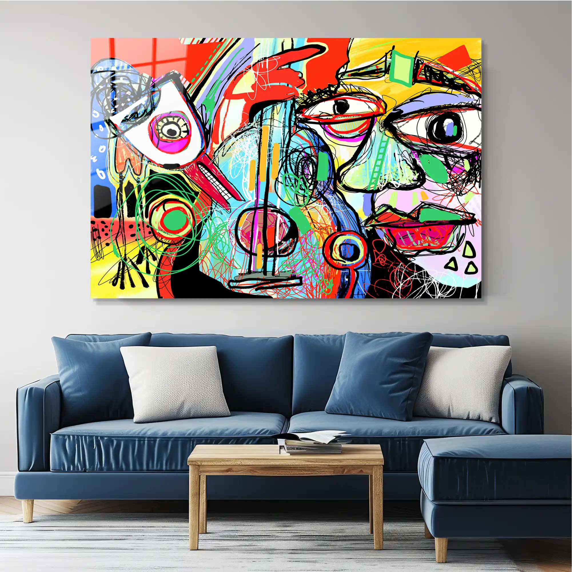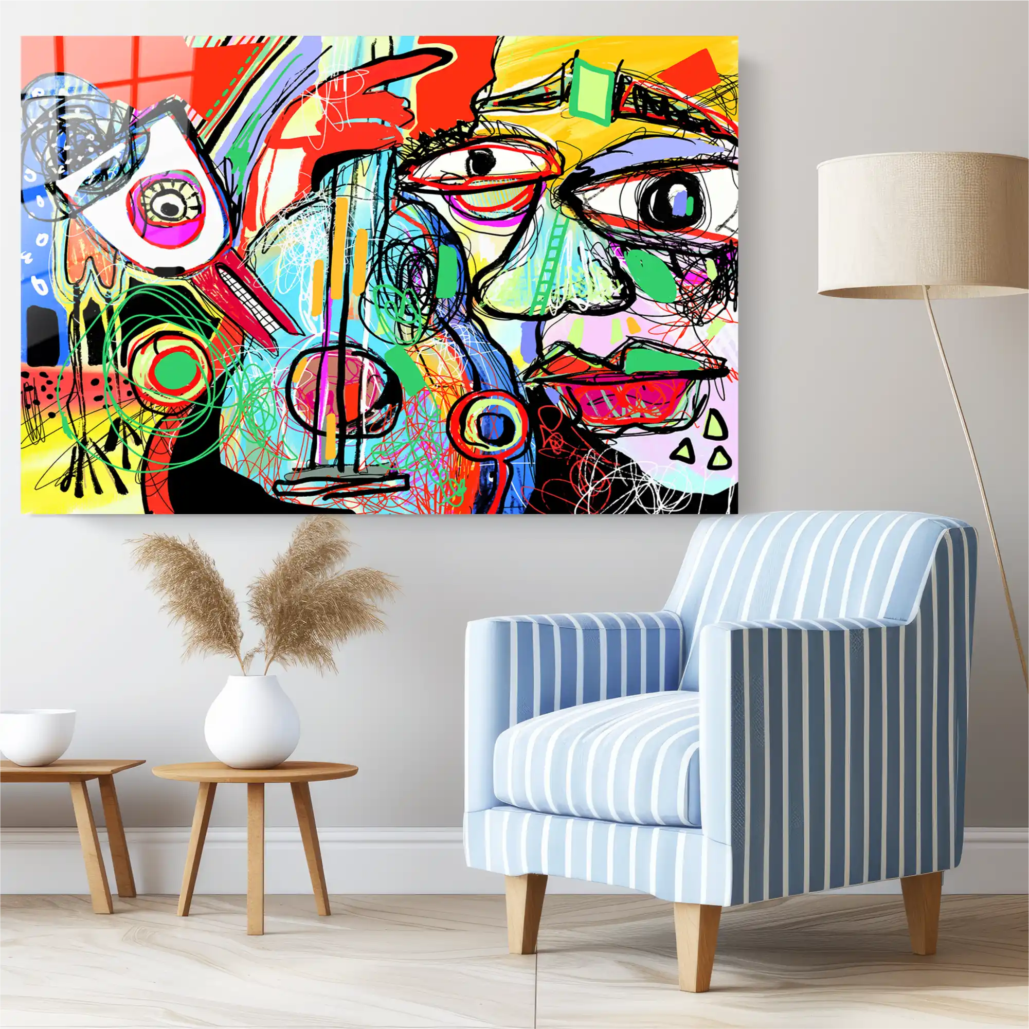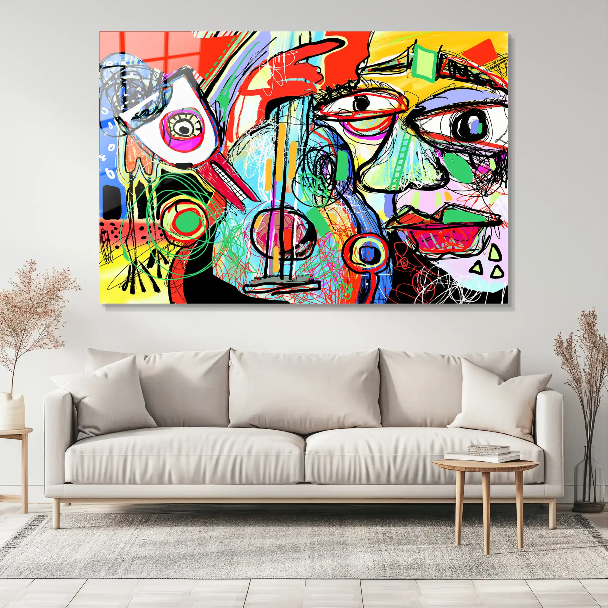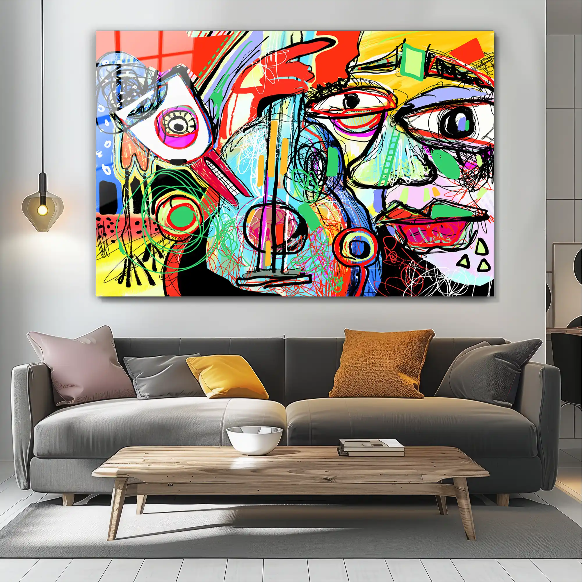 Gecenin ritmi, büyük bir şehrin durmak bilmeyen enerjisi, kaybolmuş bir melodinin izi… Bu eser, içimizdeki karmaşık duyguların ve sınır tanımayan yaratıcılığın tuvalde (şimdi camda) hayat bulmuş halidir. Her çizgi bir duygu, her renk bir anıyı fısıldıyor. Graffiti ve Pop-Art’tan ilham alan bu dışavurumcu parça, sanatın durdurulamaz akışını, capcanlı ve benzersiz bir enerjiyle duvarınıza taşır. Yaşam alanınıza anında dinamizm ve modern bir ruh katacak bir sanat eseri!