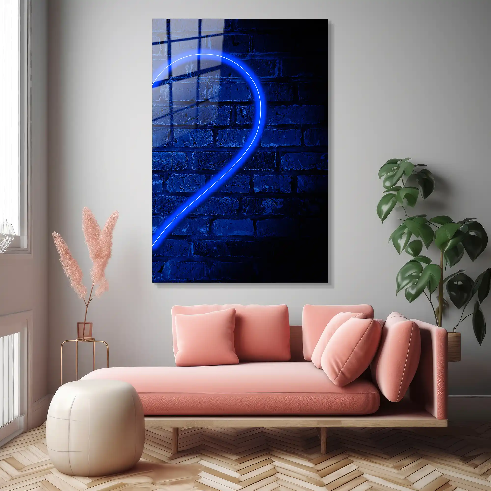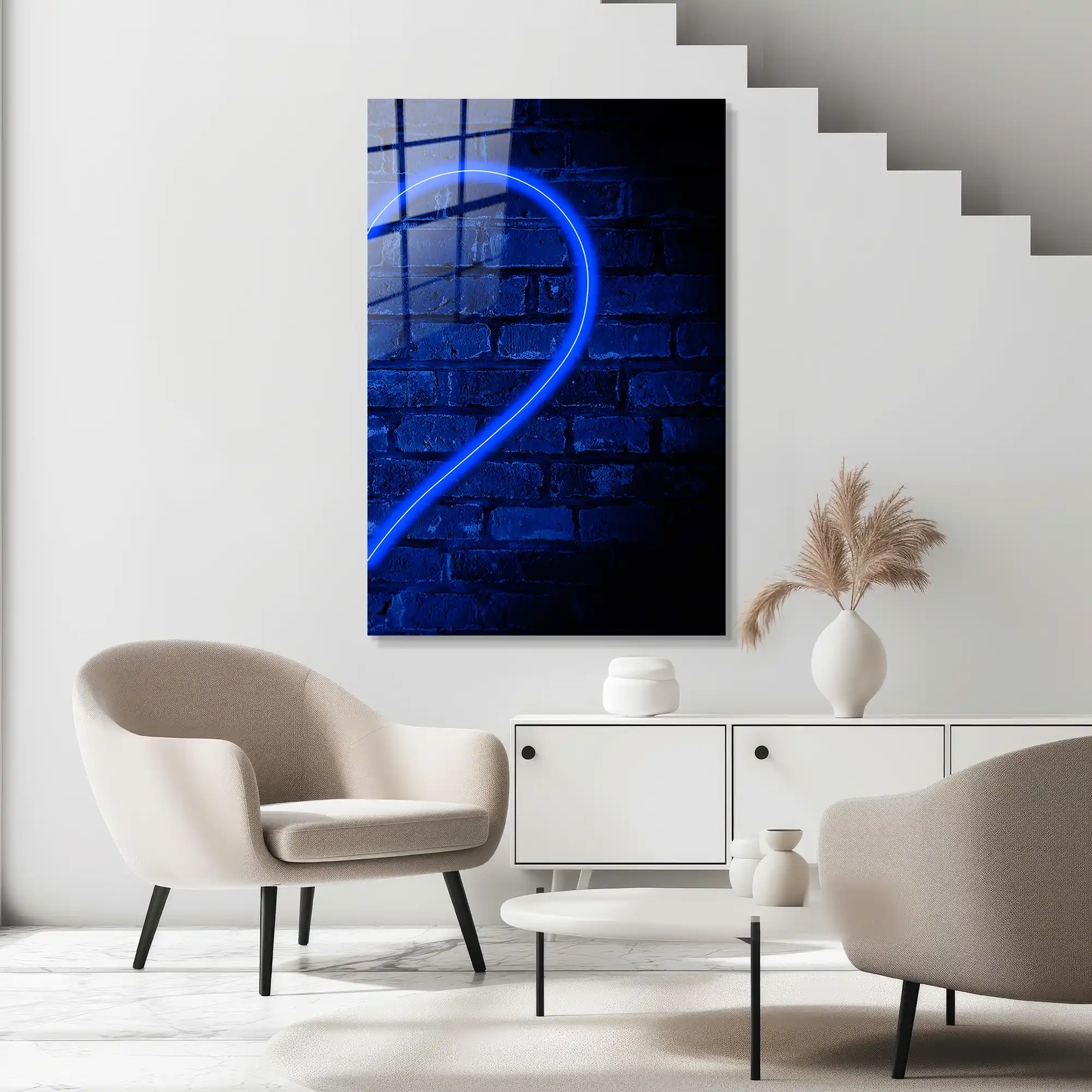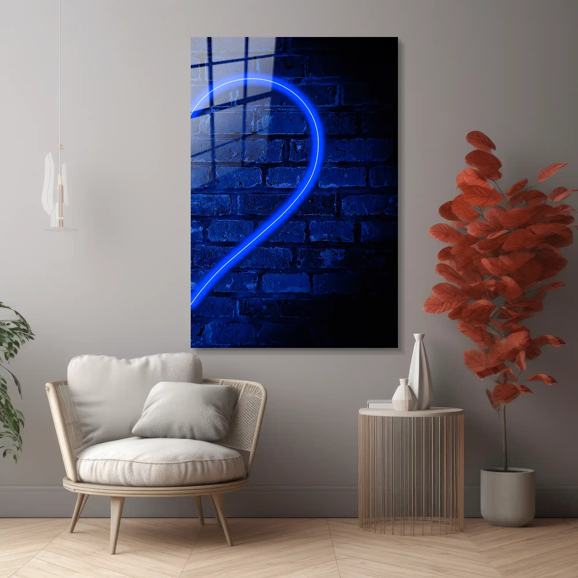 Mavi Neon Kalp Tasarımlı Tuğla Desenli Cam Tablo