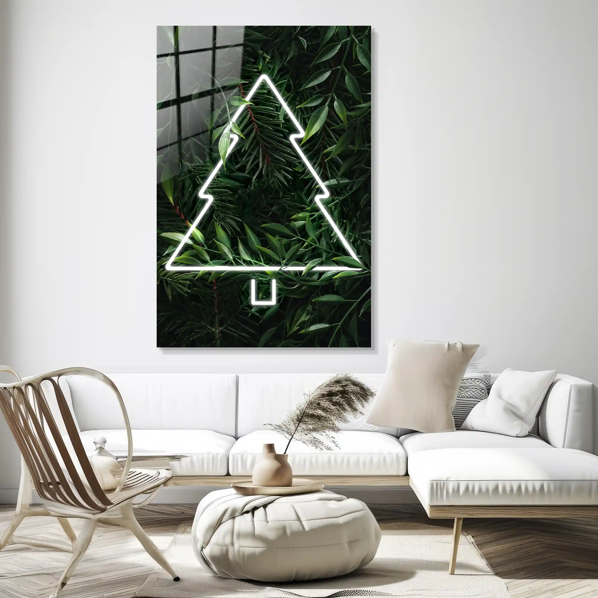 Doğanın huzur veren derinliği ile modern tasarımın en saf hali tek bir karede buluşuyor… Bu özel eser, sık orman dokusunu ve yeşilin her tonunu barındıran canlı bir botanik arka planı, minimalist bir neon çam ağacı silüetiyle birleştiriyor. Yaprakların arasındaki organik karmaşa ile beyaz neonun kusursuz geometrisi arasındaki bu uyum, yaşam alanınıza hem dinginlik hem de çağdaş bir enerji katıyor. Sadece bir dekorasyon objesi değil; doğanın ebedi ruhuna ve kışın büyüsüne adanmış modern bir sanatsal dokunuştur. Camın pürüzsüz ve parlak yüzeyi, yaprak detaylarının derinliğini artırırken, neon figürün yarattığı ışık illüzyonu duvarınızda sofistike bir derinlik oluşturur.