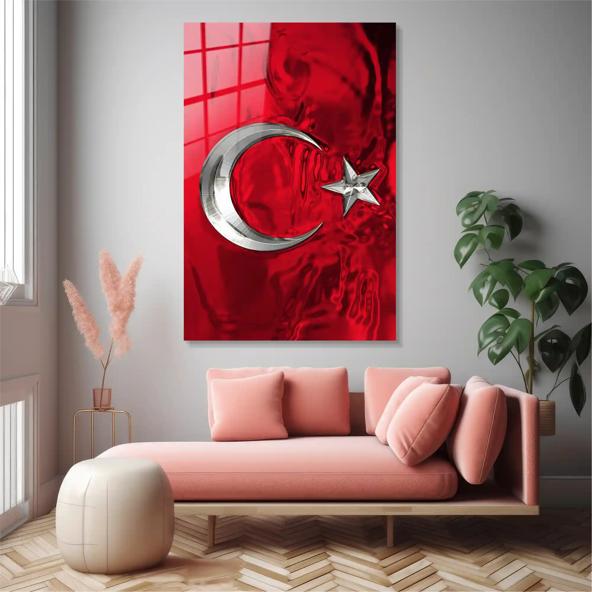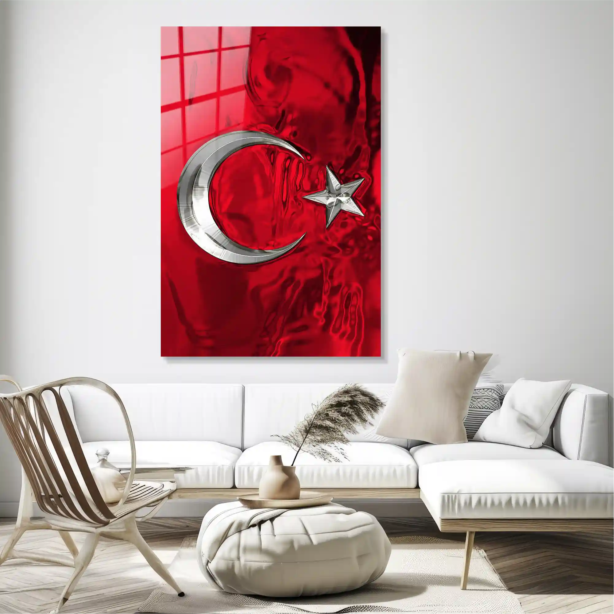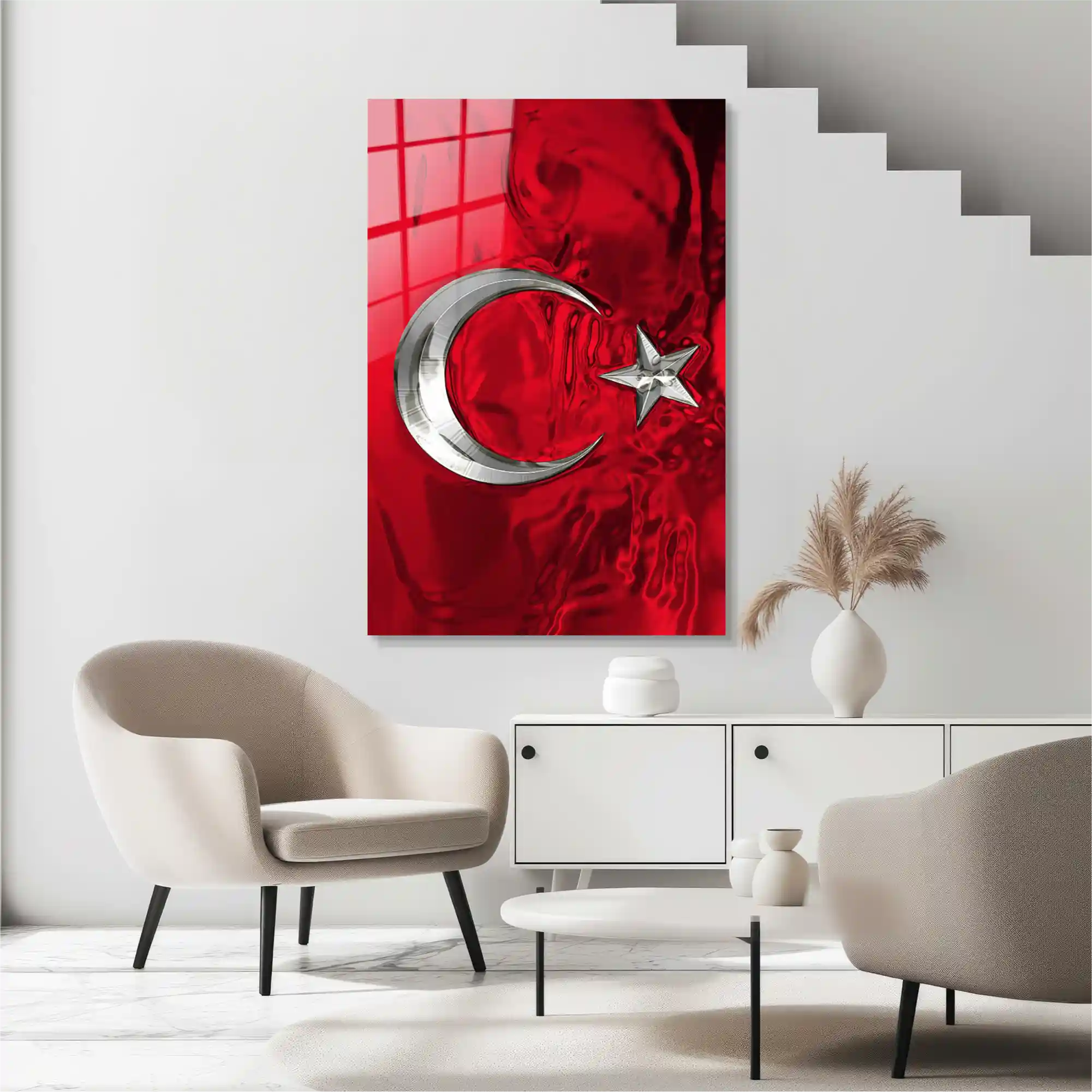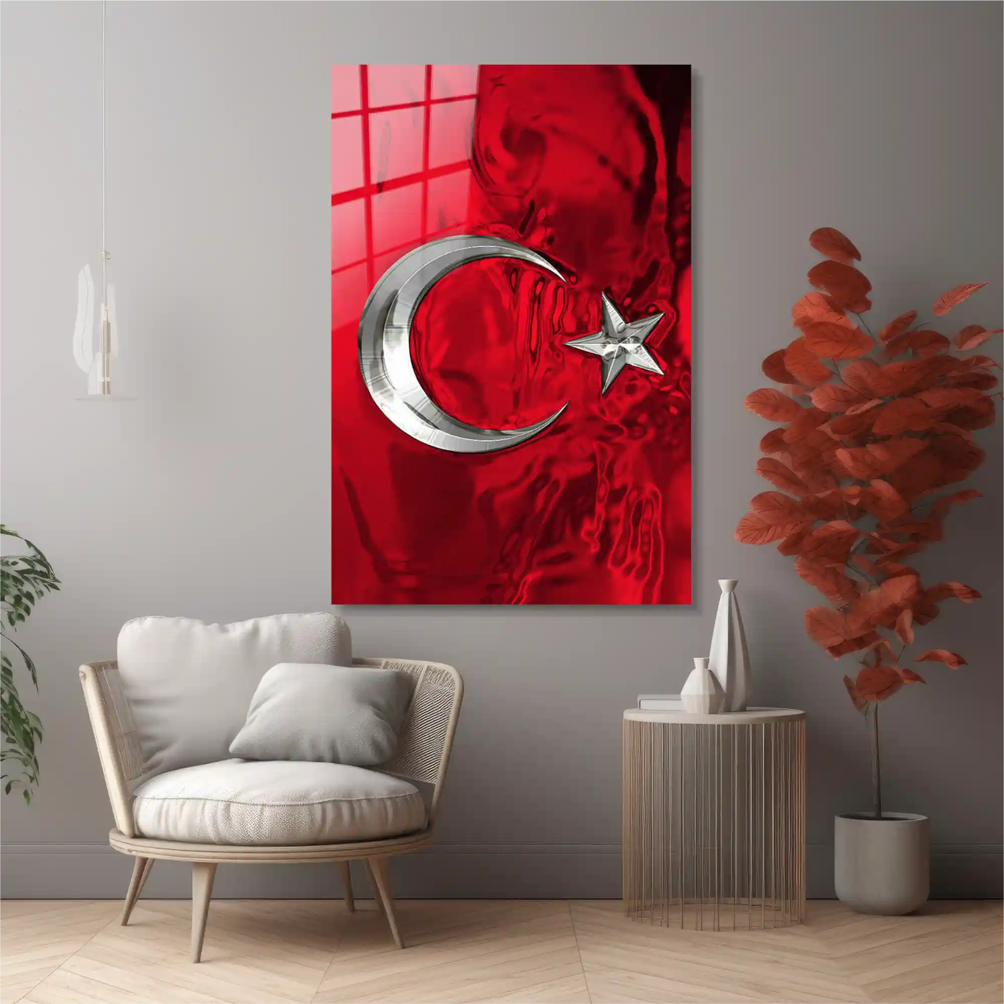 Modern bir vizyonla yeniden doğan ezelî bir sembol. Bu tablo, şanlı Ay Yıldız’ı, hareketli ve saten dokulu kırmızının üzerinde, göz kamaştırıcı krom (metalik) parlaklığıyla sunar. Geleneksel ruhu çağdaş sanatla birleştiren bu eser, sadece bir bayrak değil, aynı zamanda güç, asalet ve modern estetiğin bir ifadesidir. Duvarınızdaki her yansıma, ulusal gururunuzun parlak bir simgesi olacak. Derin kırmızı tonu ve 3 boyutlu krom efektiyle yaşam alanınıza modern bir prestij ve kararlılık katın.