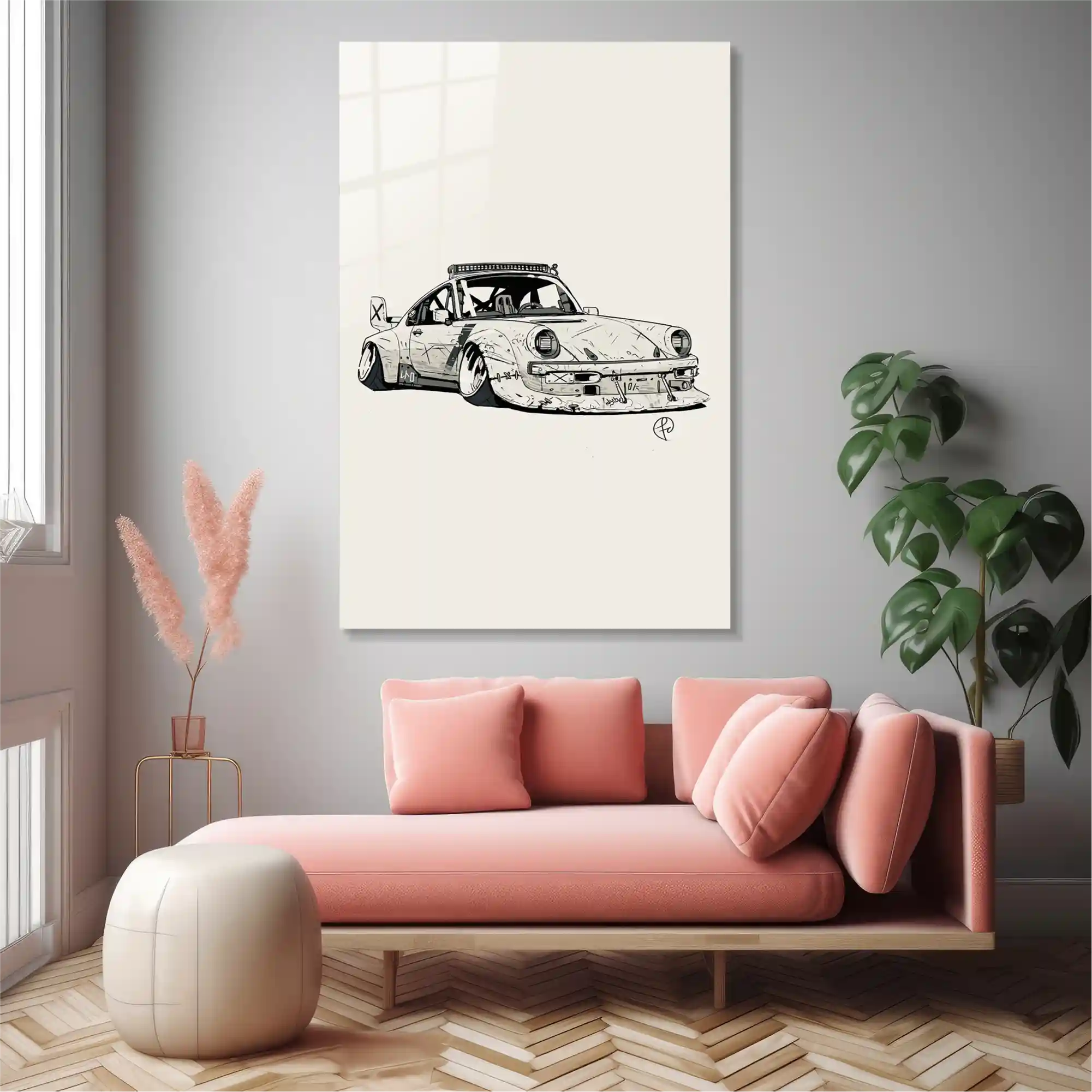 Özel Çizim Porsche 911 Dekoratif Cam Tablo