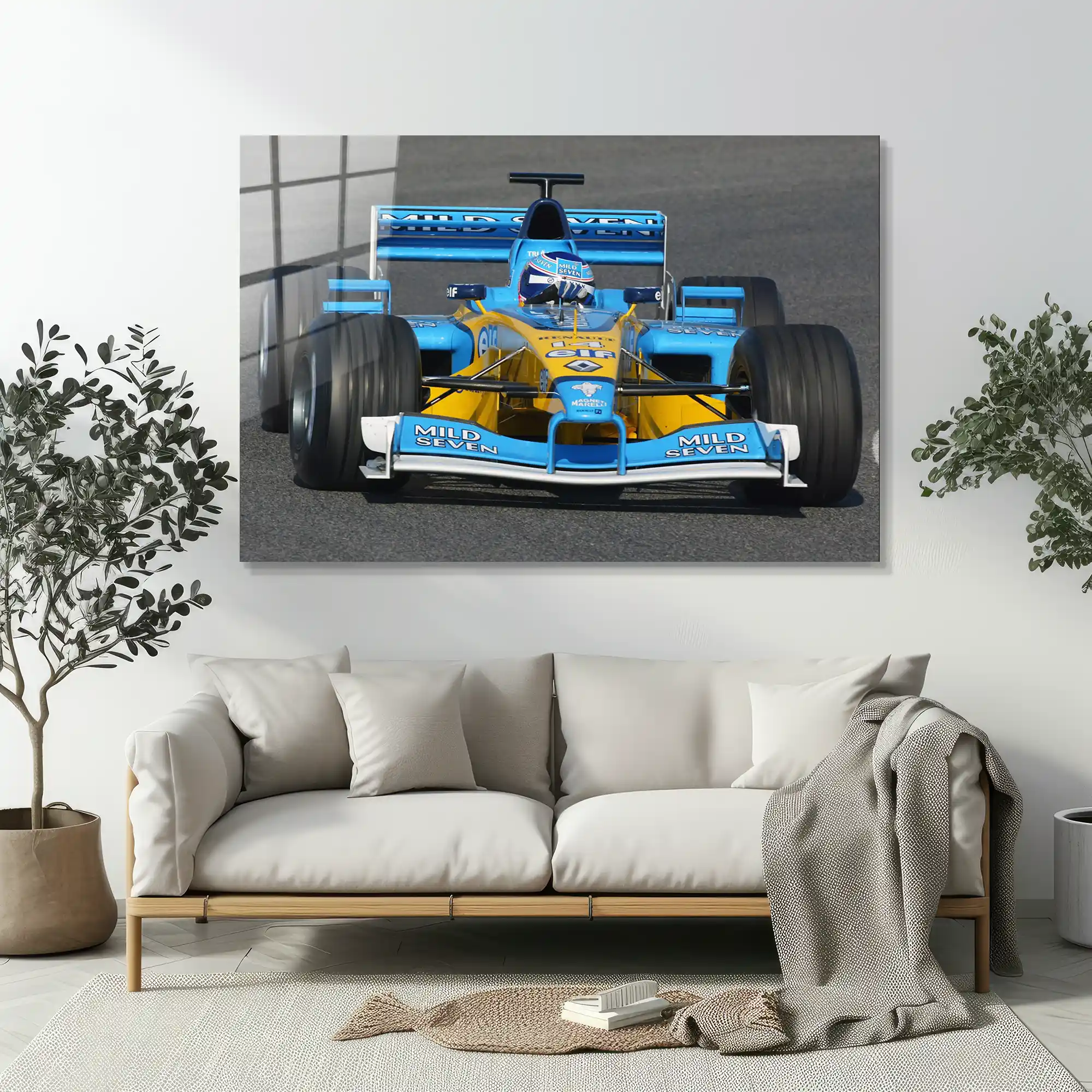 Hızın, stratejinin ve kusursuz mühendisliğin asfaltla buluştuğu o zirve noktası… Bu özel cam tablo, Formula 1 tarihinin en ikonik araçlarından biri olan, Fernando Alonso ile şampiyonluklara koşan mavi-sarı Renault F1 aracını tüm dinamizmiyle yakalıyor.