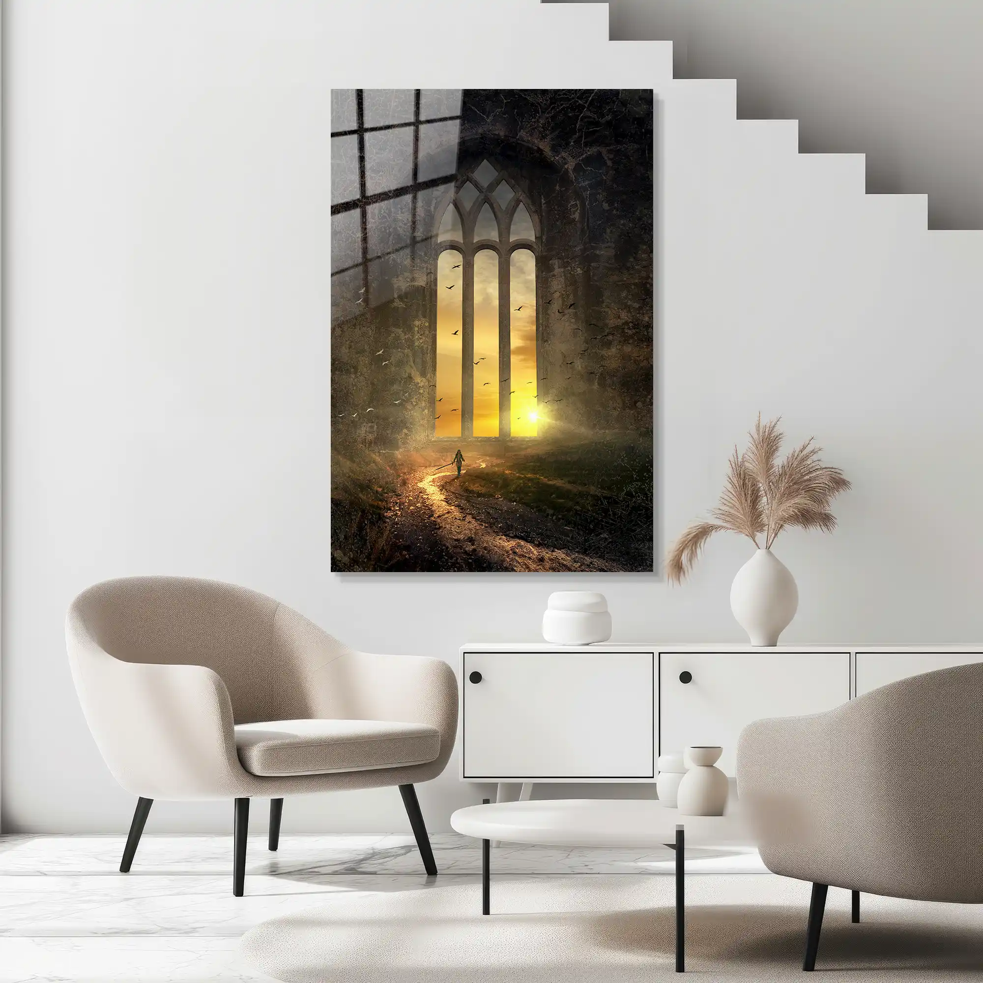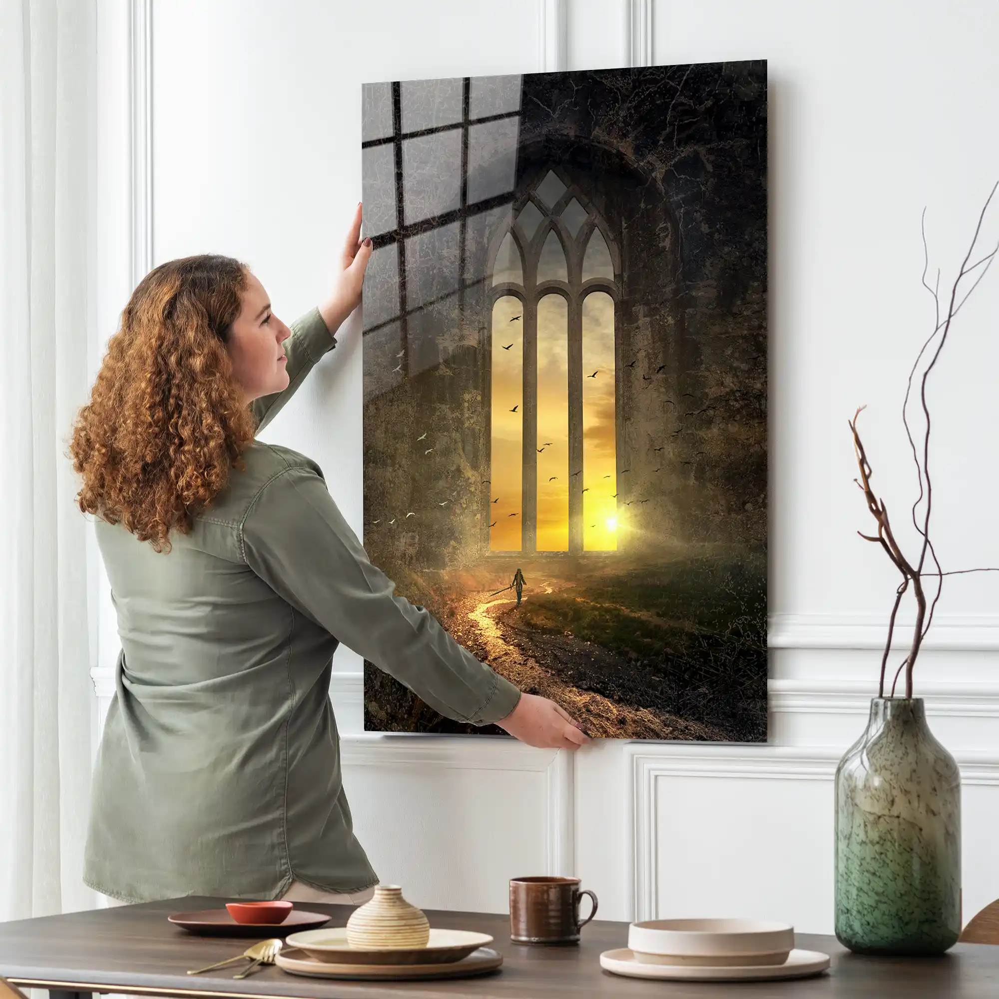 Her büyük başarı, atılan cesur bir adım ve yukarı doğru ivmelenen bir azimle başlar… Bu özel eser, “Success” kavramını sadece bir kelime olmaktan çıkarıp, zirveye doğru tırmanan bir figür ve yükselen bir grafik eğrisiyle görsel bir serüvene dönüştürüyor. Siyahın derinliği üzerine işlenen altın ve beyaz hatlar, disiplinli bir çalışmanın ve kararlılığın yarattığı o muazzam yükselişi simgeliyor. Sadece bir dekorasyon parçası değil; her gün size potansiyelinizi, katettiğiniz yolu ve varmak istediğiniz noktayı hatırlatan modern bir motivasyon manifestosudur. Camın parlak yüzeyi, grafik çizgilerinin netliğini ve figürün dinamizmini her açıdan canlandırarak çalışma alanınıza profesyonel bir enerji katar.